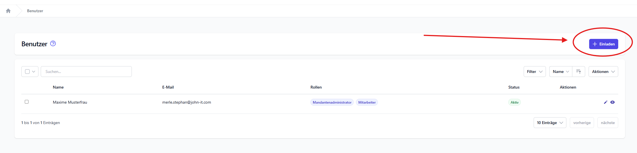 Gehe dazu in den Bereich Einstellungen -> Benutzerverwaltung -> Benutzer einladen und trage die erforderlichen Informationen ein.